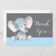 Söt Elefant Baby Pojke Blå och Grå Tack Kort