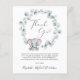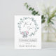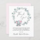 Snygg tack-kort för baby shower med "Tack" i ett stilrent skrivstil med en hjärtsvans och en akvarell av en rosa elefantbaby i en krans av eukalyptusgrönska. Anpassa ditt tackmeddelande och lägg till ditt/dina namn i en signeraturstil, eller lämna tom för en handskriven not.