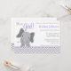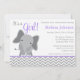 Moderna grå och lila elefant-tema inbjudningar till baby shower. En söt elefant-illustration är perfekt för en baby shower för en liten flicka.