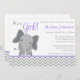 Söt Elefant Chevron Lila Baby Shower Inbjudningar