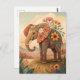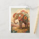 En färgrik illustration i folkkonst stil föreställande en elefant med blommor, den perfekta vykortet för barns födelsedag och andra gratulationer.