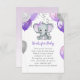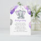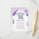 Det här älskvärda födelsemärkeskortet för bebisar har en lila och grå elefantflicka med ballonger och konfetti. Baksidan har en mjuk lila akvarellbakgrund. Lätt att anpassa för ditt evenemang genom att klicka på anpassa.