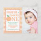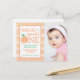 Denna inbjudan är söt som en persika! Har akvarellränder i persikofärger med frasen "Annleigh är en söt en". Perfekt för en sommarpersiko-tematisk första födelsedagsfest. För att ytterligare anpassa, lägg till ditt barns foto.
