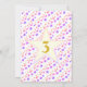 Söt enhörning födelsedagsinbjudan. Vacker rubrik med gyllene prickar, enhörning med tre färgers regnbåge och stjärnmönster på rosa bakgrund. Baksidan har flerfärgade prickar och siffran 3 inuti en stjärna. All text och alla siffror kan anpassas.