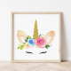 Lägg till den sista handen på din babys rumsinredning eller ditt barns sovrum med denna underbara konsttryck! Designen har en akvarell enhörning med guldtandhorn och blomsterkrans.