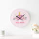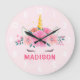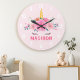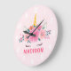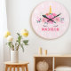 Söt Enhörning Ögonfransar Flickors Sovrum Väggur. Denna design har en vacker enhörning omgiven av gyllene stjärnor och blommor. Pastell rosa magisk fantasiväggur för flickor. Anpassa denna anpassade design med ditt eget namn eller text.