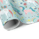 Whimsiskalig enhörningsfödelsedagsinpackningspapper med färgglada magiska enhörningsillustrationer och mjuka pastellfärger. Perfekt för flickors födelsedagsfester, enhörningsteman celebrationer och rolig presentinpackning. Originalkonst av Caroline Bonne Müller