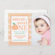 Denna inbjudan är söt som en persika! Funktioner vattenfärg ränder i persika nyanser med frasen "Annleigh är en söt en". Perfekt för en sommar persika-tema första födelsedagsfest. För att ytterligare anpassa, lägg till ditt barns foto.