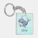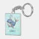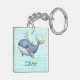 Denna personliga nyckelring för barn har en söt, fantasifull val i en livfull rosa och blå färgskala, som simmar lekfullt med en liten hatt.