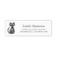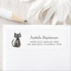 En söt returadressetikett med en liten svart katt till vänster om etiketten, skapad i en fantasifull, skissstil. Anpassa enkelt den mörkgråa typografin med ditt namn och kontaktinformation.