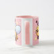 Tillsätt en touch av kunglig sötma till din dag med denna söta kaffemugg i seriefigurstil med en bikung-drottning! Med sitt runda gula ansikte, skinande ögon, rosiga kinder och rosa krona med hjärtformad mittdel prydd med ädelstenar utstrålar denna bin charm och glädje. Dess ömtåliga blå vingar och klassiska svart-gula ränder framträder mot en drömlik rosa bakgrund fylld med tindrande stjärnor. Perfekt för de som älskar kawaii-estetik, fantasytung tema eller lekfulla naturinspirerade mönster.