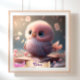 Söt Fågel Baby Rosa Ugglebok Personlig Konst Poster