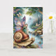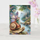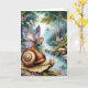 Vacker älj på snigel i en magisk skog med grodor, fjärilar och andra sagor sak. Insidan är en förvåningsfärgsida. Cute-födelsedagskort för barn eller vuxen kvinnor.