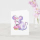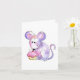Detta är en originell blandteknik-målning av en fantasifull lila mus med en rosa cupcakes.