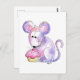 Detta är en originalmålning i blandad teknik av en fantasifull lila mus med en rosa cupcakes.