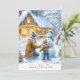 Söt far och son bygger snöman i akvarell julkort