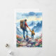 Söt far och son på vandring tillsammans i akvarell julkort