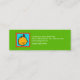 Ett täcke indelat i två lagrar ljus grönt och blått som förstärks av en bukett med färgstarka blommor. I det övre högerna ljuger du ditt ansedda namn medan jobbtiteln "Babyvvakt" är i motsatt ände.