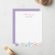 Skicka söta meddelanden med detta bedårande personliga brevpapper med en kant av söta färgglada hjärtan i rosa, mint, lavendel och persika. Den övre texten säger “en liten hälsning från” följt av ditt anpassade namn i ett charmerande skrivstil. Baksidan har en vacker lavendelfärg för en mjuk, charmerande touch. Perfekt för barn, tonåringar eller alla som älskar söta och färgglada mönster—utmärkt för tackkort, brev eller vardagligt skrivande.