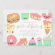 En sådan speciell tillställning förtjänar en mycket söt firande. Denna söta barns födelsedagsinbjudan är perfekt för sommarfödelsedagar. Med kawaii-pannkakor, toast, glaserade munkar, tårta, cupcakes och smoothie. Ett sött skrivstilstypsnitt visas i färgglada pastellfärger. Reverserar till ett roligt rosa munk-sprinkelmönster.