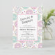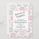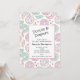 En inbjudan till baby shower med ett läckert roligt mönster. Illustration av pastellrosa och gröna munkar med strössel och glasyr.
