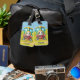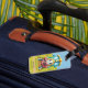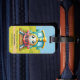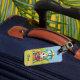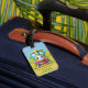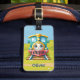 Denna färgglada personliga bagagetikett för barn har ett sött färgglatt tåg på en järnväg.