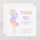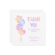 Söt färgrik vattenfärg ballong barnkalas tackkort med hjärta och stjärnformad ballong och livfull färgrik text "Tack".