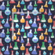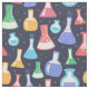 Färgrik kemi-tematisk tyg med kolvar illustrationer och söta prickar på en marinblå bakgrund. Om du är kemist, kemistudent eller lärare och du gillar hantverk kommer detta tyg ge dig en möjlighet att förena dina två intressen.