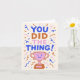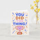 Det här roliga och glada kortet är perfekt för att fira alla stora prestationer med humor och hjärta. Designat med fet retro-inspirerad bokstavsstil, lekfull konfetti och en leende trofé, är det ett bra val för tonåringar, högskoleexaminerade eller någon som har uppnått något som är värt att jubla över. Perfekt för köpare som letar efter ett lättsamt, modernt och färgrikt sätt att säga grattis.