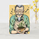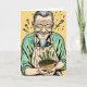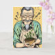 Personlig fars dag-kort. Asiatisk pappa som ler och håller en växt. Trädgårdshobbyist.