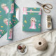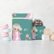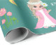 Söt fe-älva och blommor på turkos bakgrund Presentpapper.