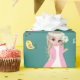 Söt fe-älva och blommor på turkos presentpapper