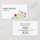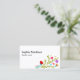 Söt affärskort med blommigt bouquet och delare av färglösa mexikanska fiesta-blommor. Mallen är konfigurerad för att du ska kunna lägga till ditt namn eller ditt företag namn, din position eller ditt yrke, tagline, kontaktinformation och media i social. En enkel och feminin utformning med modern typografi, som passar för många positiva tjänster och lycklig.