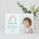 Det här söta moderna födelsedags-kortet tack, har ett fotografi av födelsedagsbarnet på en blek turkos blå bakgrund, en abstrakt pastell vattenfärg regnbåge med falska guld accenter, falska guld stjärnor och en söt tack mall som lätt kan anpassas.