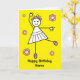 Söta teckning av en pinneflicka som ler och gör balett iförd rosa balettskor. Hon är omgiven av blommor. Kortet har en ljusgul bakgrund men det är lätt att ändra detta till en annan färg eller en snygg minimal vit. Personalisera enkelt detta kort genom att redigera malltexten på framsidan och insidan. Rolig rolig teckning för barn. Tack för att du tittar på mina designs!