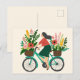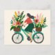 Söt flicka cyklar med blommor anpassad vykort