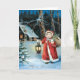 Söt flicka lykta julkrans vinterstuga helgkort