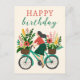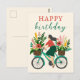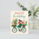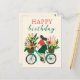 Söt flicka som cyklar med blommor Glad födelsedag Vykort