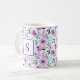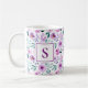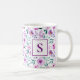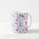 Söt flickaktig lila blommönster Monogram Kaffemugg