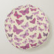 Söt flickaktig rosa fjärilmönster på beige rund kudde