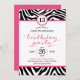 Söt flickig födelsedagsinbjudan med zebrarandomtec inbjudningar