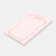 Den här charmiga klisterlapppsboken har en mjuk rosa bakgrund med en ram av ett delikat band samt en söt rosett högst upp, vilket ger den en subtil coquette-inspirerad look. Den fantasifulla ramen ger en touch av elegans samtidigt som den håller den centrala ytan ren och praktisk för dagliga anteckningar, påminnelser och korta meddelanden. Klicka på "Personalisera denna design" för att enkelt lägga till ett namn eller en anpassad text högst upp. Ett underbart val för alla som uppskattar feminin, klassisk brevpapper med en mjuk, stilren touch.
