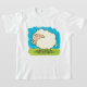 Söt fluffig vit får på gräs t shirt