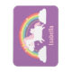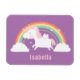Personalisera denna magnet med flickans namn och se hennes ansikte lysa upp när hon tar emot denna present. Designen innehåller en söt enhörning med rosa sockervaddsfärgad man och svans. Den flyger bland regnbågen, molnen och stjärnorna med sina små vingar.