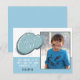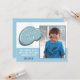 Söt födelsedags gratiskort med blå ram för pojkar med foto och tacktext. Personlig födelsedags gratiskort för dina vänner och familj. Ladda upp ditt foto och anpassa kortet med ditt namn och text. Kortet har en blå serie molnram och blå-vit färgskala. Bra som födelsedags gratiskort för pojkar.