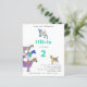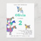 En samling färgglada, psykedeliska getter i levande rosa, lila, blå, orange, gul och akvamarin med dvärgget, babyget och getter som står på getter. En söt flerfärgad inbjudan till 2-års födelsedagsfest som kan anpassas till valfri ålder. Denna roliga födelsedagsinbjudan för gårdsdjur är lätt att anpassa för att skapa en unik inbjudan lämplig för barn och vuxna getälskare. Originalkonst av konstnären Catherine Sweetman
