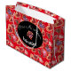 Tittar du en färglös och söt presentväska till din älskade? Fira och avsluta att slå in din gåva till din kära med den här presentväskan. Den här söt presentsäcken har färgstarka, foliepexturerade påsar på röd bakgrund. Den här illustrationen visar att det finns klåpar som förhärskar och delar deras skönhet med varandra. Den här presentpåsen är den estetiska essensen av harmoni, skönhet, färg och fantasi. Anpassa den här presentsäcken fram och tillbaka. Byt bara ut "För mitt Kärlek", "Valentina" och "Para Mi Kärlek" mot den önskade texten. Den här presentpåsen är underbar för alla som har dekor, gåvor eller godis med anknytning till Valentindagen eller ett romantiskt temaparty.