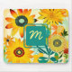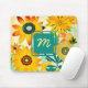 Gult och turkos vitsikkonstblommor mousesepad. Lägg till initialer i personligen.