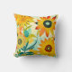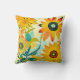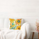Gult och turkos: vita konstblommor dekorativ kudde.