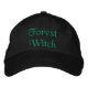 En modern häxa som i grönt broderade på ett svart basebolllock med texten Forest Witch. Den här roligten innehåller text som kan vara personlig till namn eller annan text. En häxaktig gåva eller älskare-campingidé utomhus.